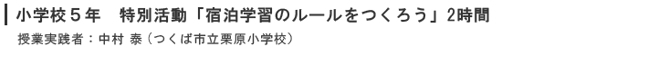 そこでこの単元では、「宿泊学習におけるルール作り」を行った。宿泊学習は小学校における集団生活を学ぶ場としては欠かせない活動であり,その場において,自分たちの作ったルールで生活を行う活動は,より良い人間関係を結ぶ力を養ってくれるはずである。