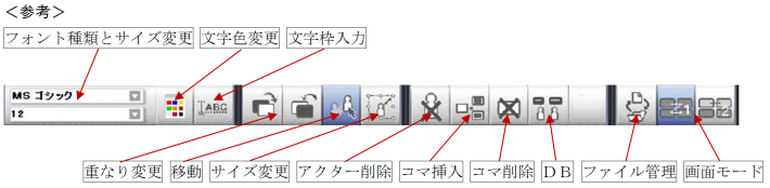 (6) セリフ、アクター名の表示、非表示:「目」ボタンをクリックして、目の開け閉めでおこなう